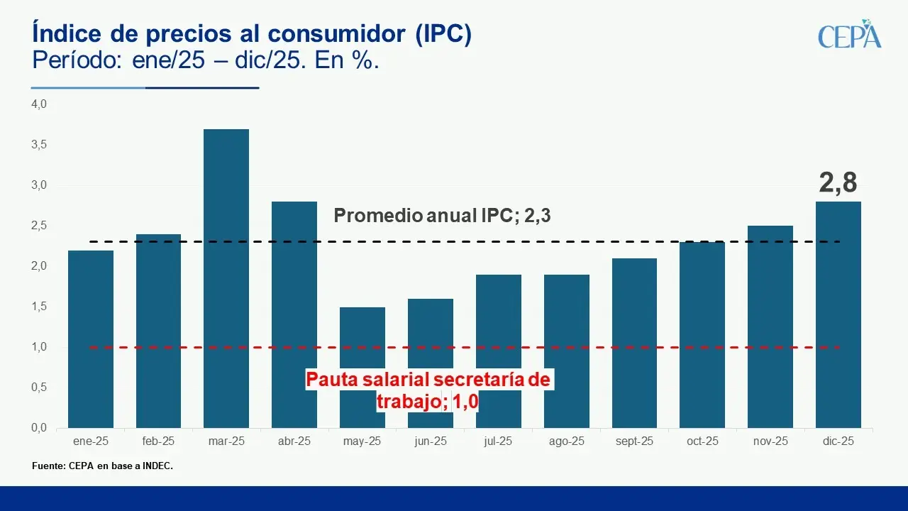 Aunque la inflación anual fue la menor desde 2017, los datos indican que los precios promedios se incrementaron desde mayo del año pasado (1,5%) y que el último mes del año cerró con un valor superior al promedio mensual de 2025 (2,3%).